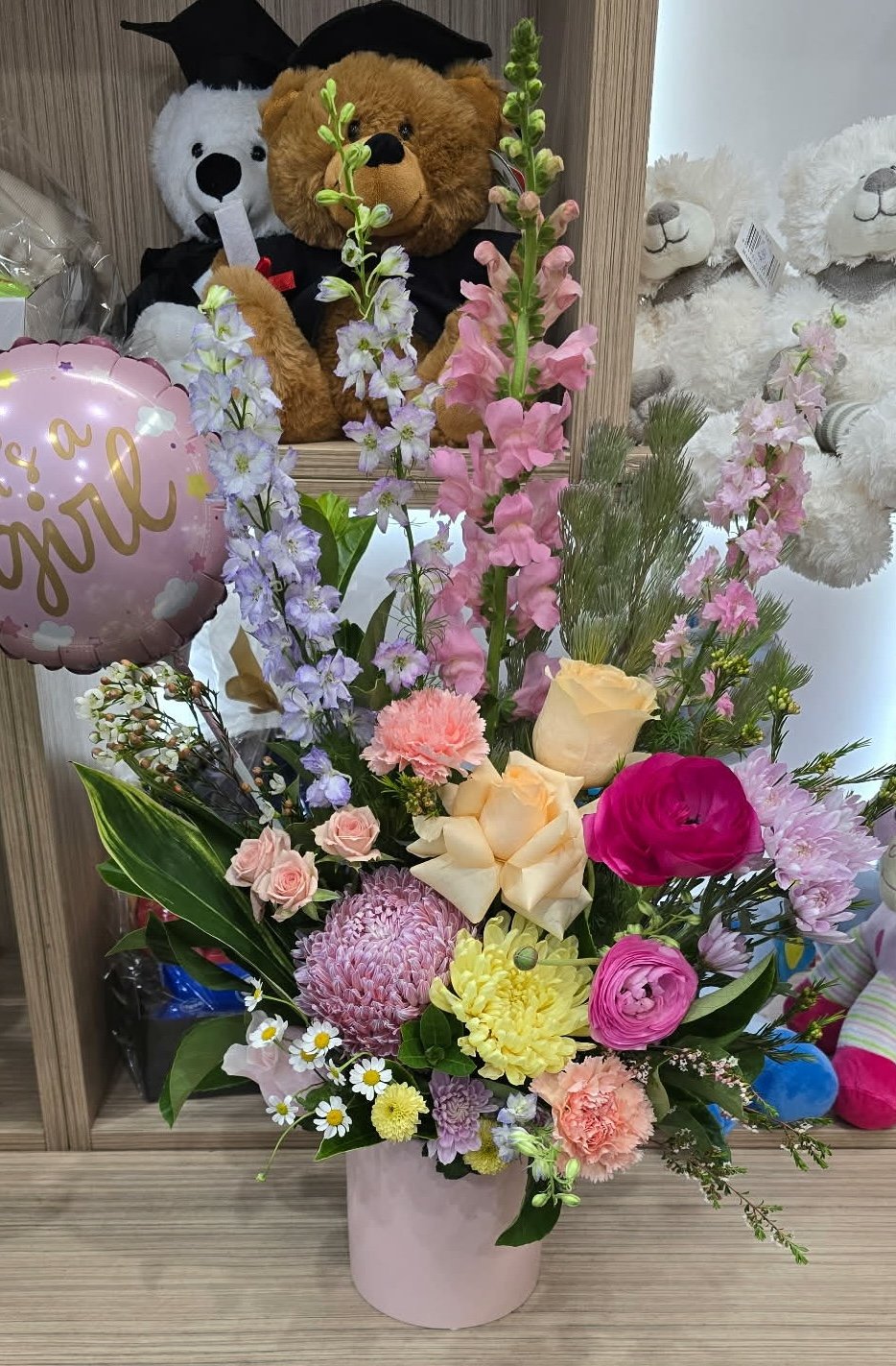 Seasonal florals, with ceramic vase.