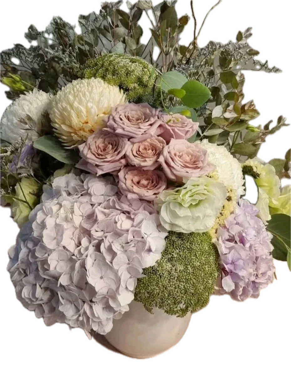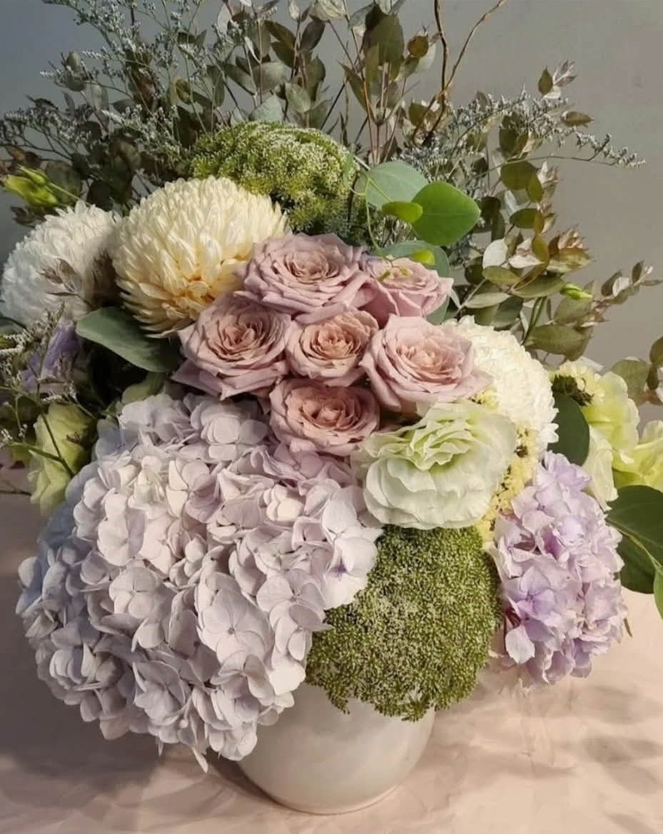 Annes lace roses, mums, hydrangea